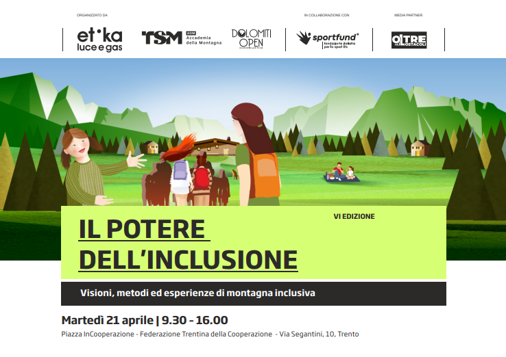 Martedì 21 aprile 2026, dalle 09:30 alle 16:00 presso la Piazza inCooperazione – Federazione Trentina della Cooperazione – Via Segantini, 10, Trento, una giornata formativa rivolta ai professionisti e alle professioniste, e volontari e volontarie del mondo del turismo, del sociale e delle professioni della montagna.